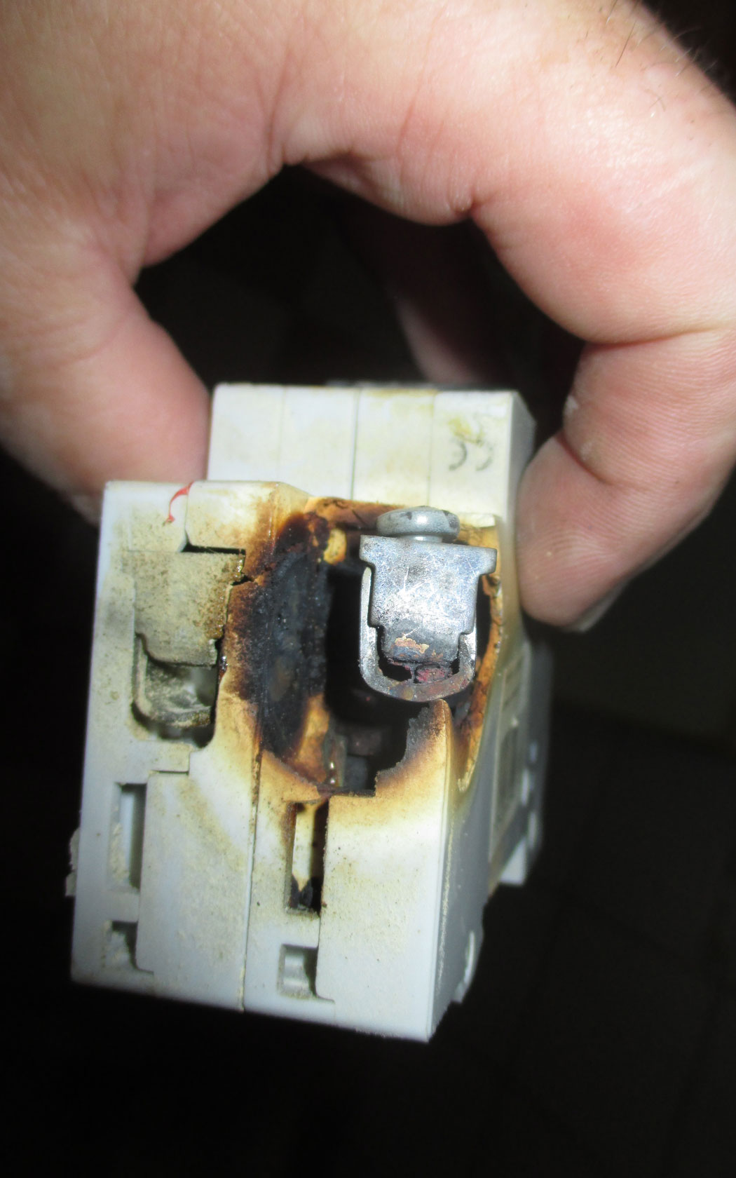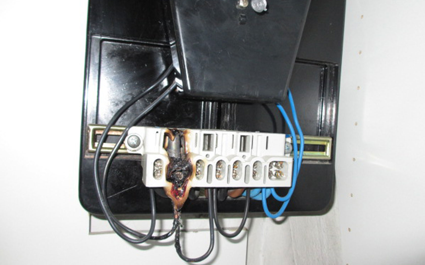 Schaltet der FI-Schalter bei der mechanischen Prüfung - durch Druck auf den Testknopf - den Strom nicht augenblicklich ab, besteht Brand- und Lebensgefahr. Er ist vermutlich korrodiert und muss sofort von einem unserer Elektrotechniker ausgetauscht werden.