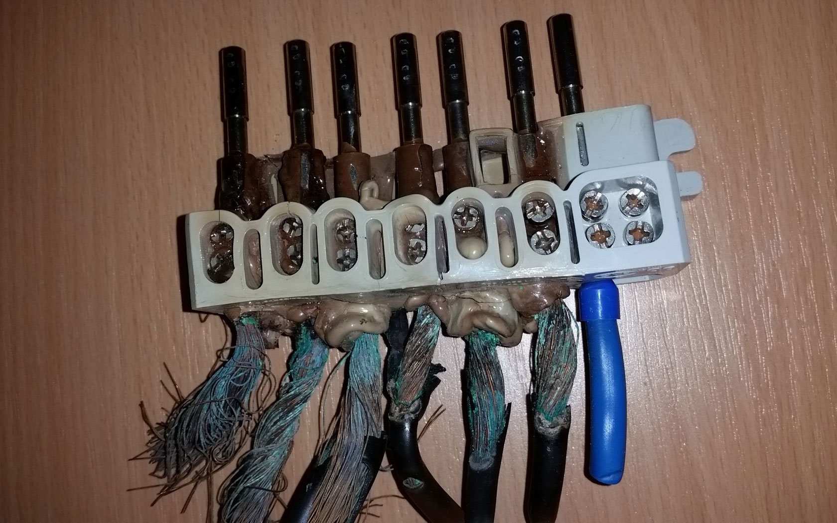 Auch Elektroinstallationen - Steckdosen, Kabel, Schalter, Leitungen, Verteiler und sogar FI-Schalter - können altersschwach werden. Mit der Zeit entstehen korrosive Schäden z.B. durch porösen oder kaputten Kunststoff, Überhitzung oder Verklebung der Leitungen und Feuchtigkeit.